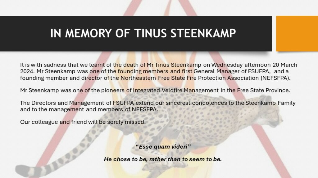 “Thinus Steenkamp was one of the Pioneers of Integrated Veldfire Management in the Free State Province”