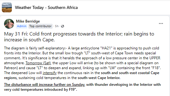 Weather Update - 31/05/2024 May 31 Fri: Cold front progresses towards the Interior; rain begins to increase in south Cape. by NEFSFPA Website Administrator Go to Facebook Post